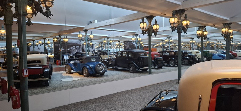 Das Herzstück bildet die große Halle mit einer Vielzahl klassischer Automobile, wie man sie aus Stummfilmzeiten kennt. Doch auch das Ambiente ist mehr als ein bloßer Rahmen: die historischen Laternen, die Scheddachkonstruktion, der feine Kiesboden und der verblüffende Kunstgriff einer verspiegelten Wand, welche der Szenerie eine beinahe magische Tiefe verleiht.