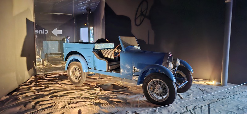 Für jüngere Besucher und alle mit spielerischer Neugier bietet das Museum eine Reihe eindrucksvoller Mitmachangebote: kleine Elektrofahrzeuge zum Selbstfahren, virtuelle Herausforderungen wie das Reifenwechseln in einer hektischen Rennumgebung, eine entspannte digitale Fahrt zum Schloss Bugatti oder ein Überschlagsimulator, dessen reale Erfahrung man besser den Maschinen überlässt. Eine weitere Station lässt aus einem Autowrack per Kamera das vollständige Fahrzeug erscheinen. Wer wissen möchte, wie eine Karosserie verschweißt wird, kann per Knopfdruck beobachten, wie Roboter präzise an einem Peugeot arbeiten. Und wer nach all dem noch immer nicht genug gesehen hat, kann mit einem kleinen Elektrozug die Sammlung durchfahren.
